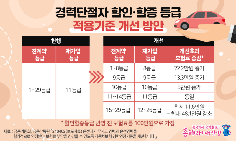 - 자동차보험료는 나이·경력·사고 이력이 핵심