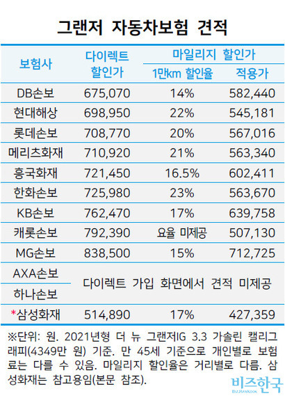 다이렉트 자동차보험이 더 저렴합니다.