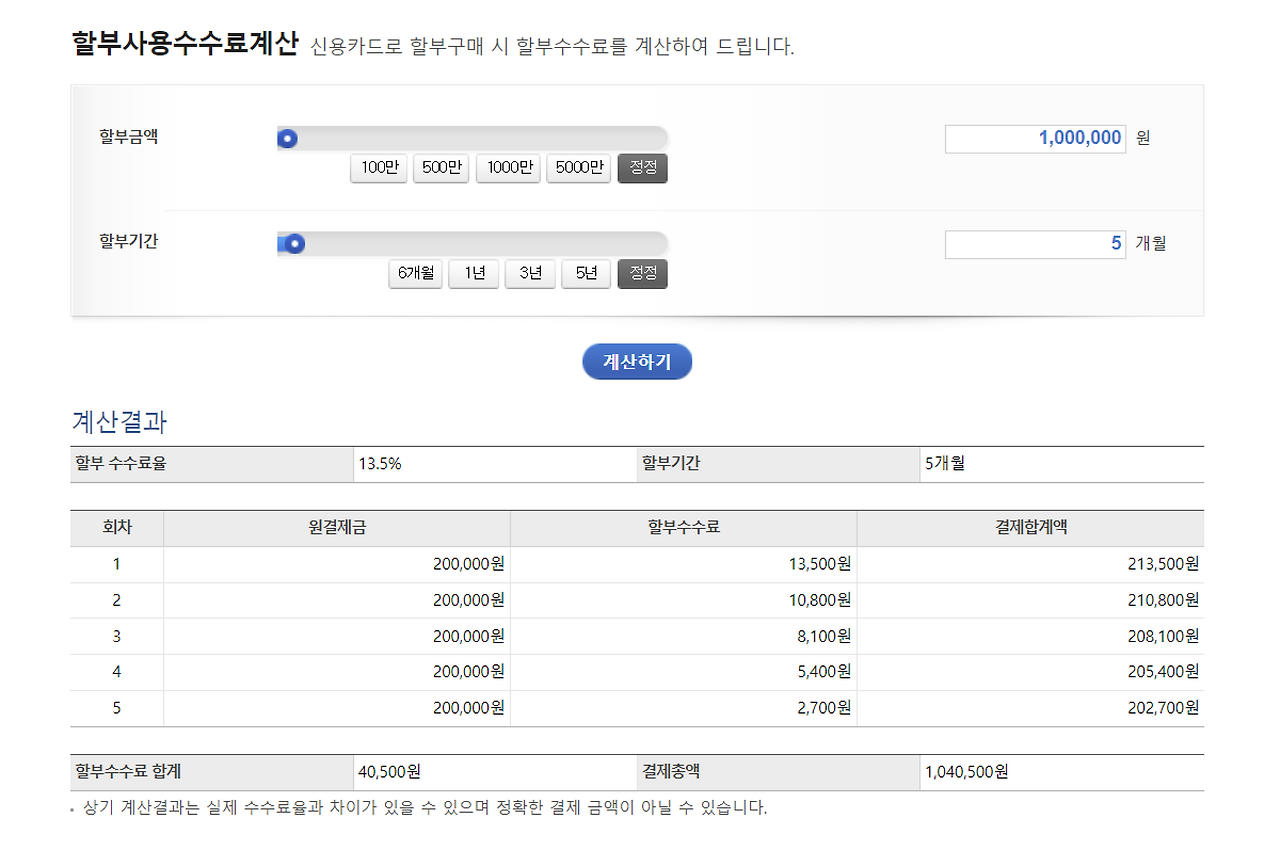할부 수수료로 몇 만 원 이상 차이가 날 수 있습니다.